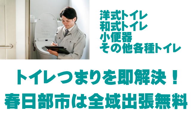 春日部市で対応可能なトイレつまりの修理サービスとなります。